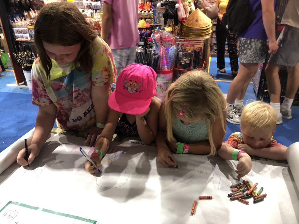 all ages to draw their favourite outdoor activity with crayons. This was a huge hit!